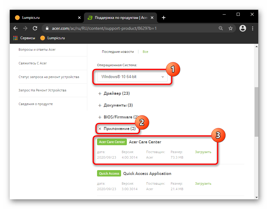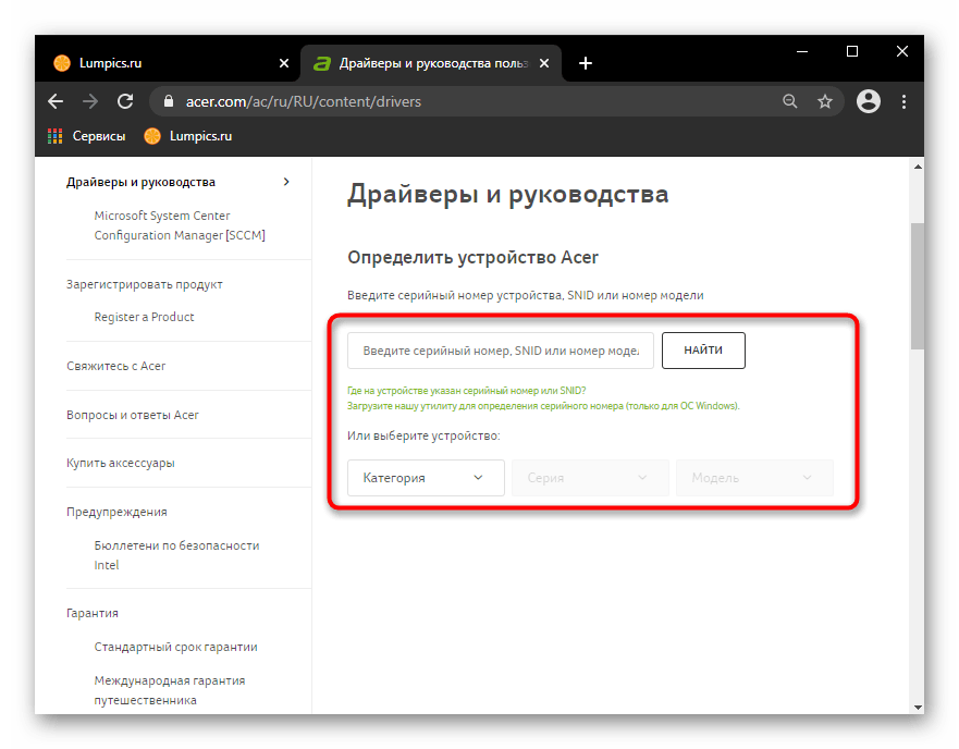 Поиск обновлений BIOS, руководств пользователя, драйверов и загрузки для продуктов Acer.