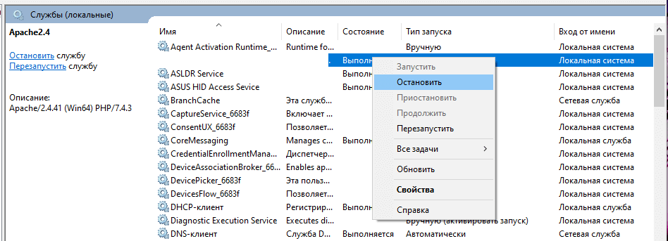 Отключение через панель «Службы»