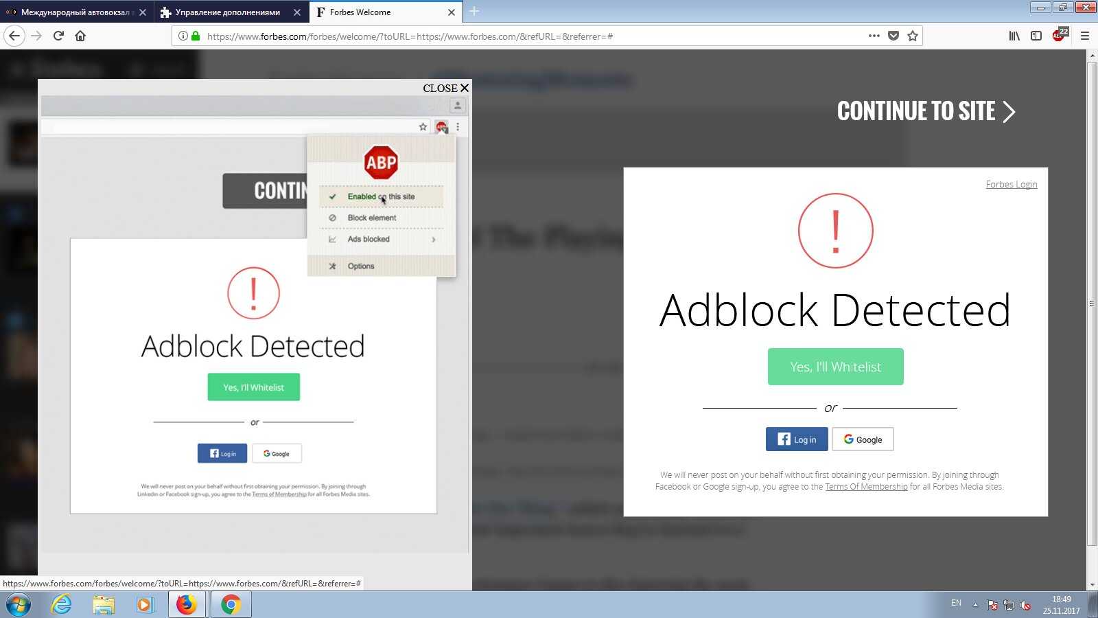 В нашем тесте Adblock Plus показал себя наравне с другими участниками, исправно вырезая рекламу. Однако некоторые сайты просто отказывались загружаться, пока мы его не отключим. Подробнее об этом смотри во врезке про adwall.