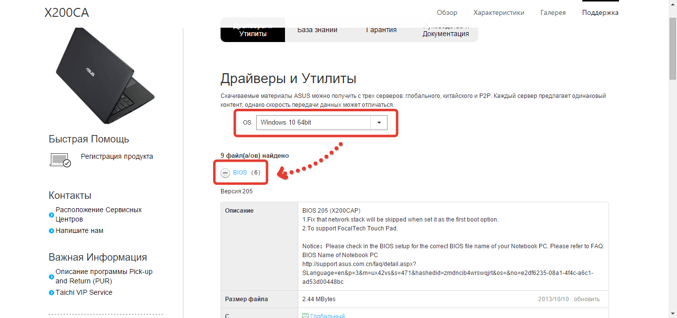 Шаг 6. Выбрать категорию «BIOS» и щелкнуть на его новой доступной версии (в данном случае это версия 2104). Нажать «Глобальный» для скачивания.