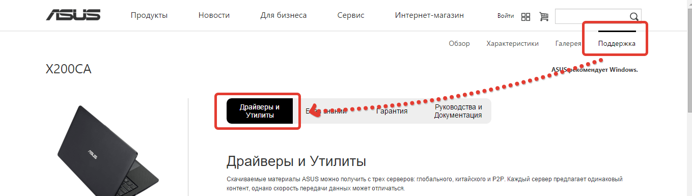 Шаг 5. Нажать «Драйверы и утилиты» и выбрать версию ОС.