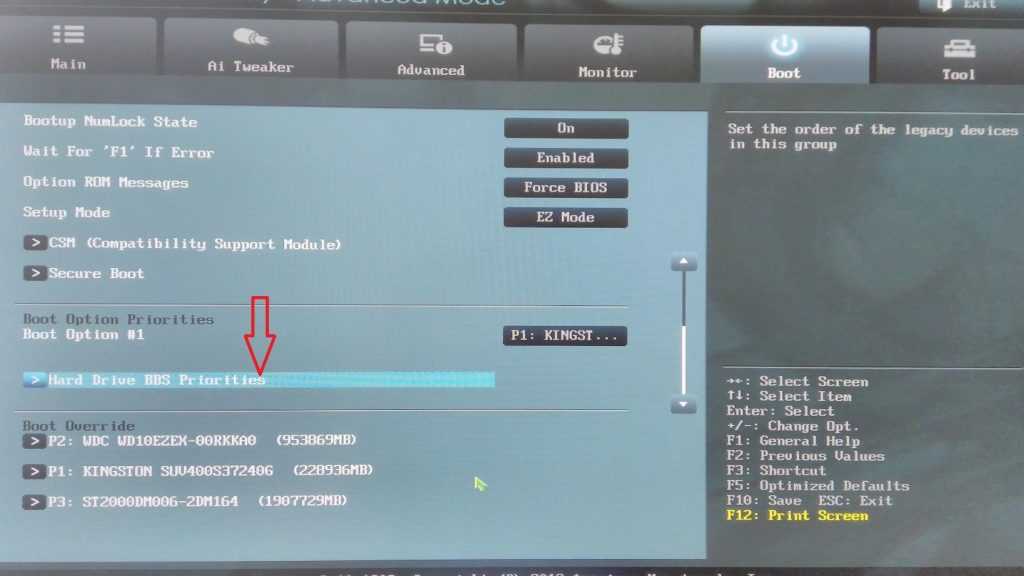 Hard Disk Boot Priority– если в одном из «…Boot Device» мы выбрали один или несколько жёстких дисков (Hard Drive), то в этом пункте нужно выбрать какой именно жёсткий диск использовать. Это касается и флешек, потому что загрузочная флешка для компьютера считается как внешний жёсткий диск.