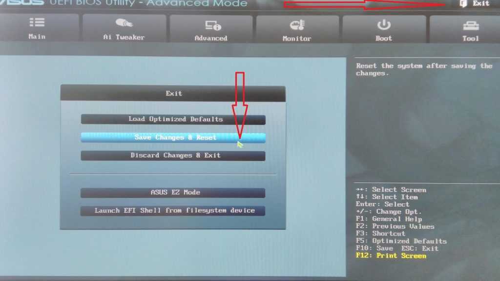После того как настройка Boot Order закончена жмем на Exit вверху, выбираем Save Changes & Reset для сохранения настроек и перезагрузки компьютера: