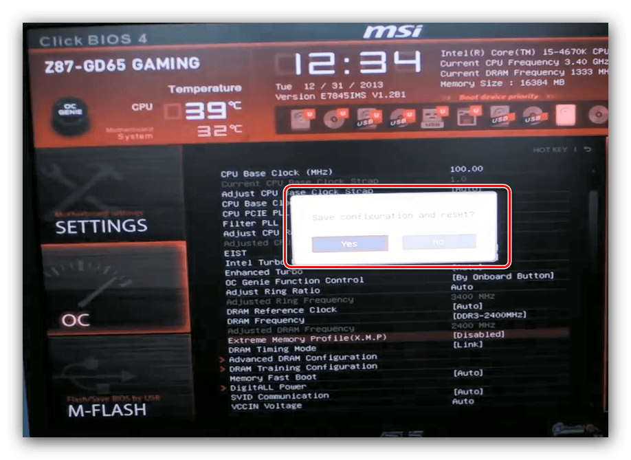 После установки сохраните изменения. Перейдите на главный экран Bios / UEFI, выберите пункт «Save settings and reboot» (Сохранить изменения и перезагрузить). После перезагрузки ОЗУ будет работать на оптимальной скорости.