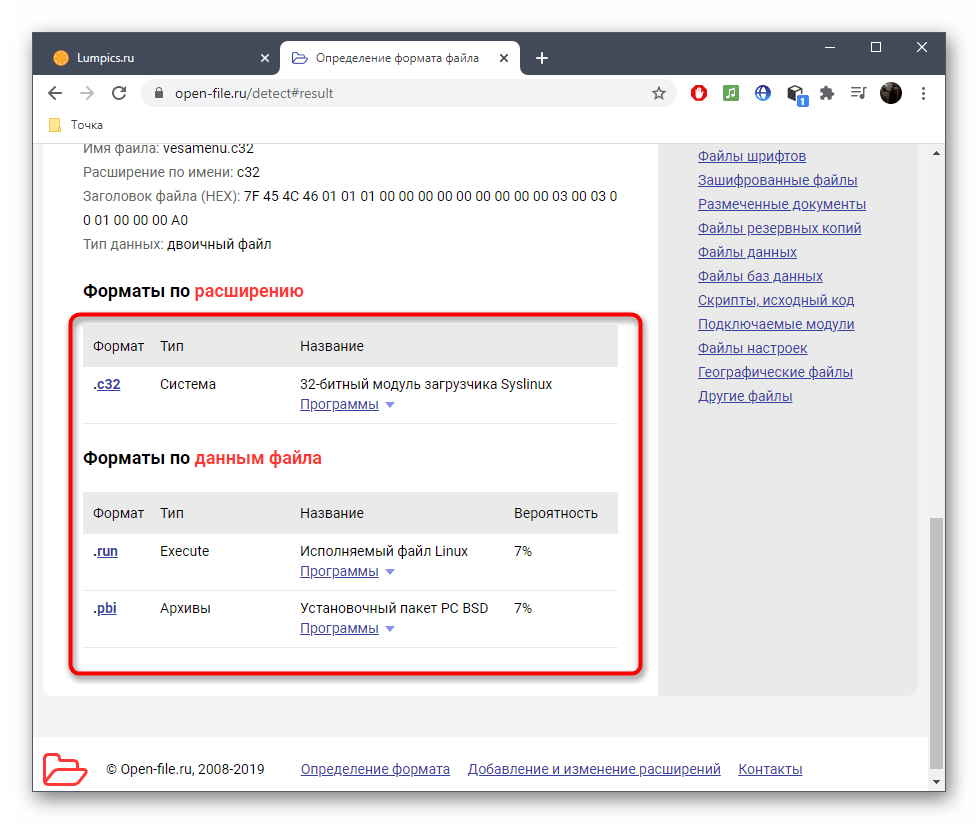 Дополнительно обратите внимание на форматы ниже. Так вы узнаете, с какой вероятностью данный тип файла может использоваться в определенных программах и операционных системах
