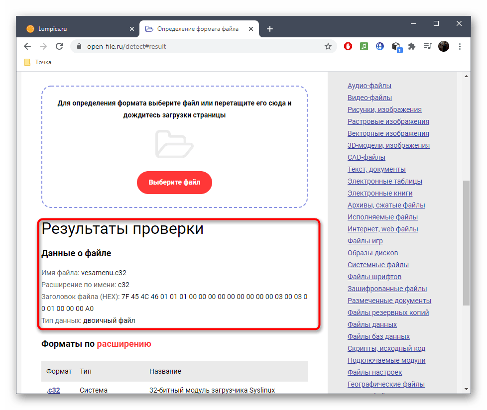 Сразу же можно ознакомиться с результатами проверки. В отдельных строках вы узнаете полное имя файла, его расширение, заголовок типа HEX, а также тип данных. Этой информации должно быть вполне достаточно для того, чтобы определить, к чему относится этот элемент.