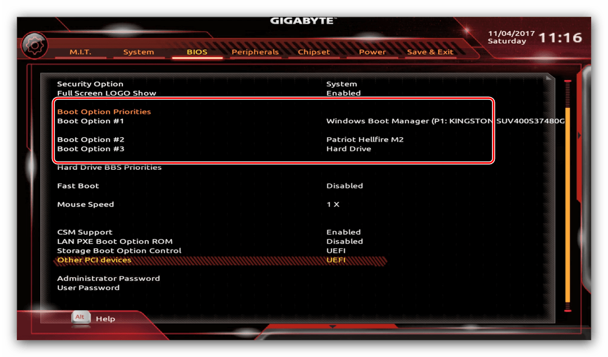 - Зайдите в раздел «BIOS Features» и воспользуйтесь опцией «Boot Option Priorities».