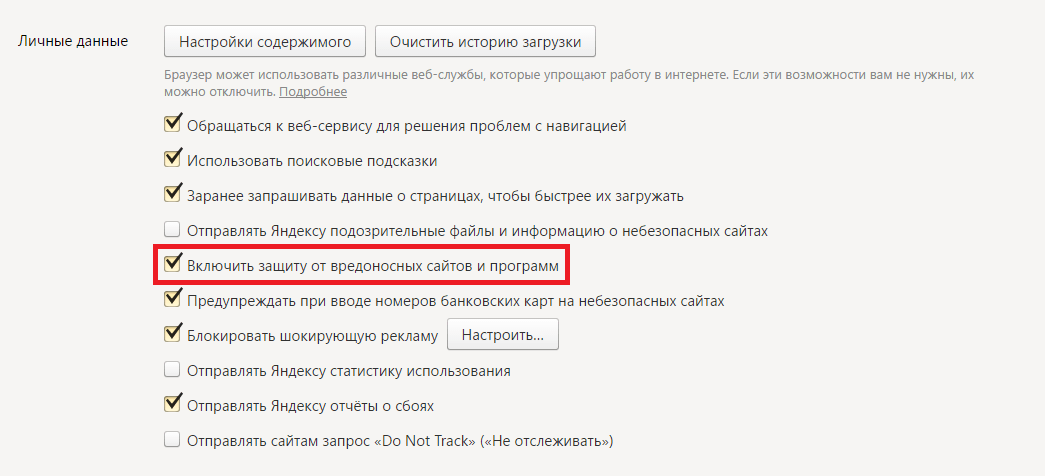 Этот простой способ отключит технологию Protect в вашем браузере. Мы еще раз хотим посоветовать не делать этого и предлагаем почитать, как этот защитник оберегает вас, пока вы находитесь в интернете. В блоге Яндекса есть интересная статья, посвященная возможностям Protect — https://browser.yandex.ru/security/. Каждая картинка на той странице кликабельна и содержит полезную информацию.