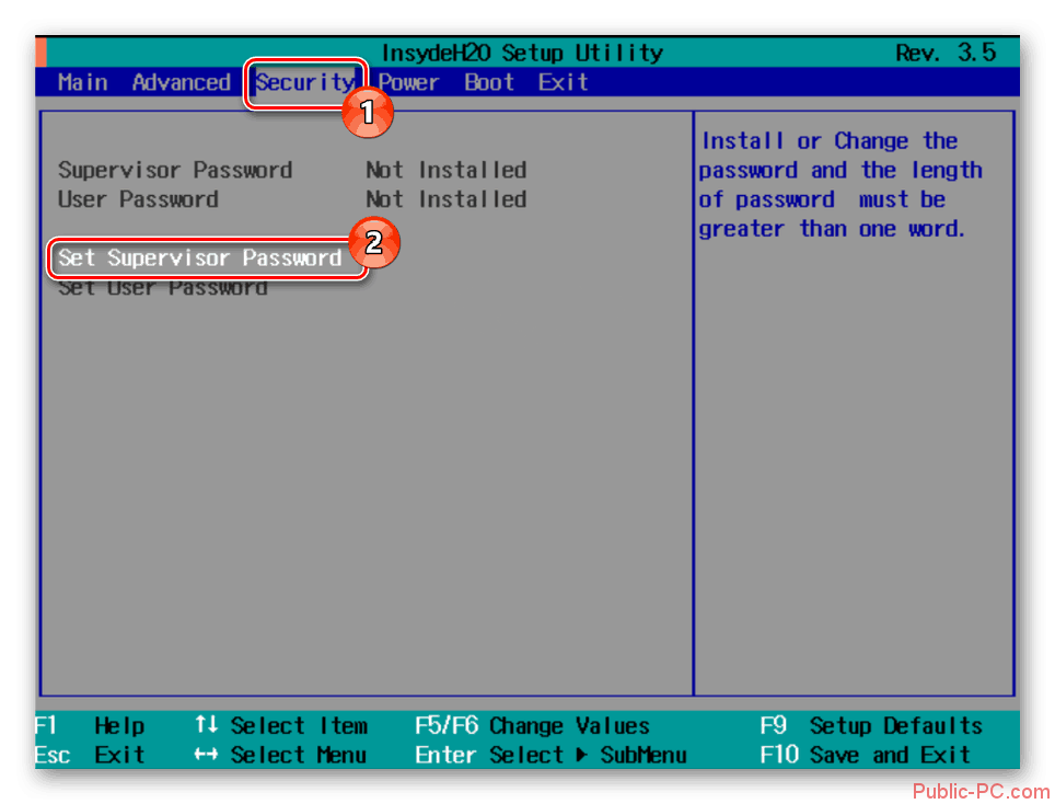 Перейдите на пункт «Set Supervisor Password» и впишите пароль