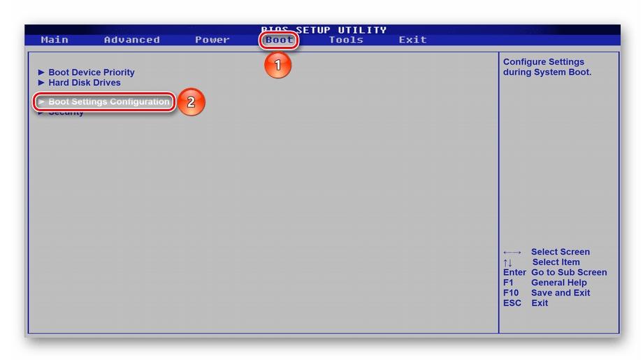 - Перейдите в раздел «Boot» и, выбрав строку «Boot Setting Configuration», нажмите клавишу «Enter».