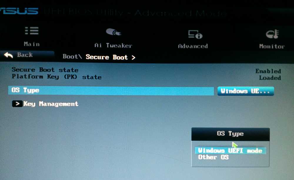 Оказавшись в BIOS/UEFI, нужно выключить Secure Boot – часто этого бывает достаточно, чтобы исправить ошибку «Invalid signature detected. Check Secure Boot Policy in Setup». В UEFI компьютеров ASUS, чтобы отключить Secure Boot нужно перейти в раздел Boot и установить в «OS Type» вариант «Other OS».