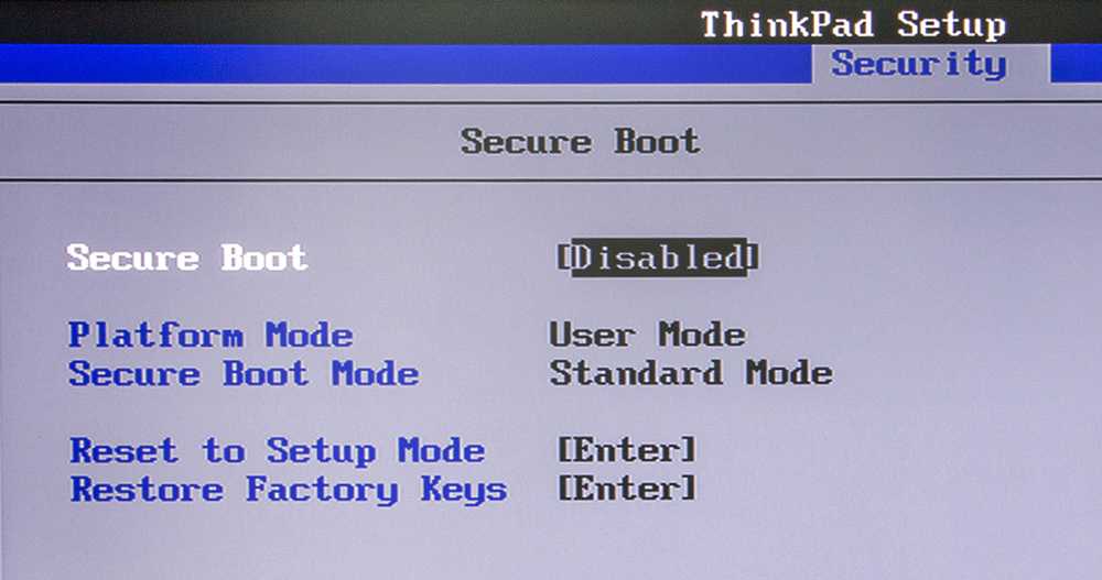 Для этого заходим в настройки BIOS вашего девайса и, обычно, на вкладке Boot или Security можно отыскать выше описанные параметры.