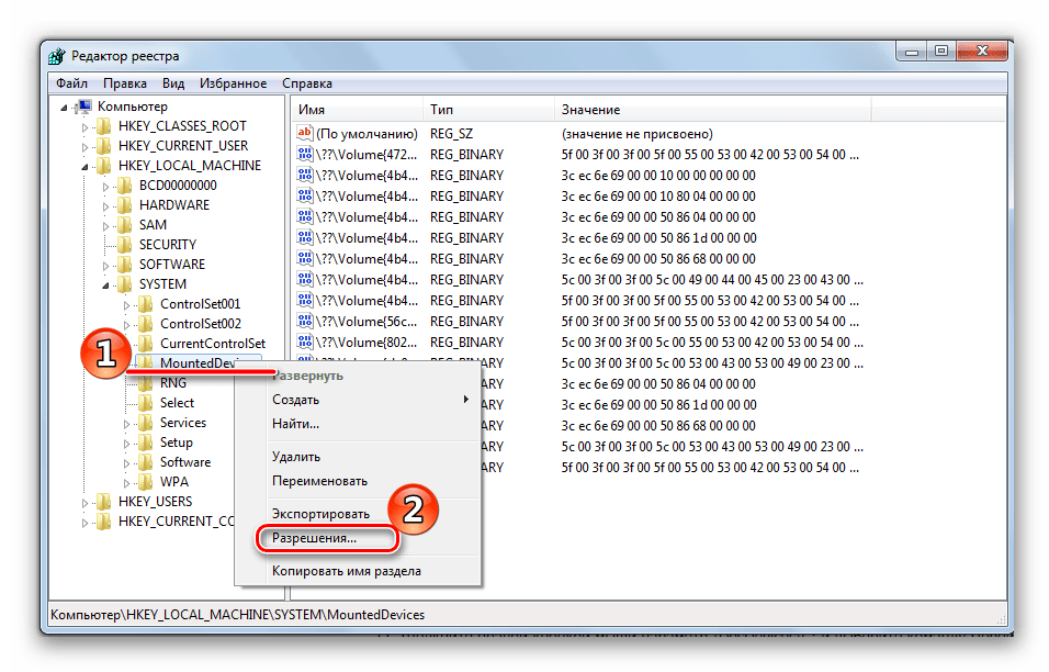 Ищем нужную ветвь HKEY_LOCAL_MACHINE SYSTEM MountedDevices