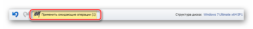 В самом верху появится желтый флаг с надписью «Применить ожидающие операции». Нажмите на него.