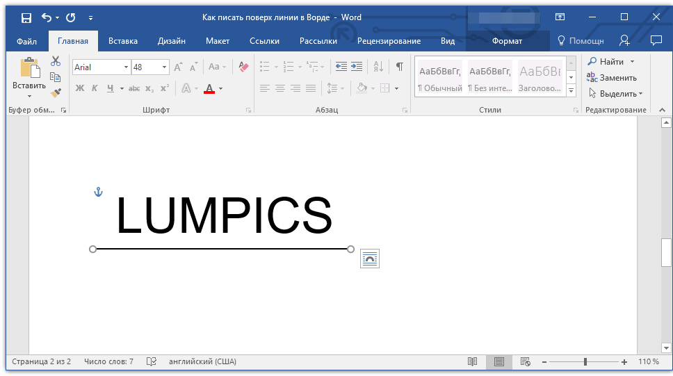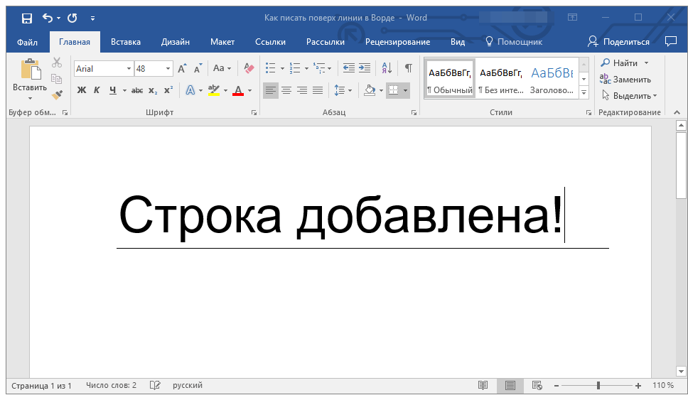 Вот и все. Теперь мы можем писать над линией, как захотим. И никаких разрывов и сдвигов больше не будет. Вот, что у нас в итоге получилось.
