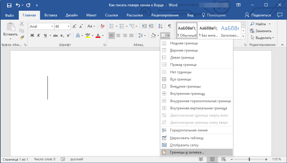 Как вставить горизонтальную или вертикальную линию в Word