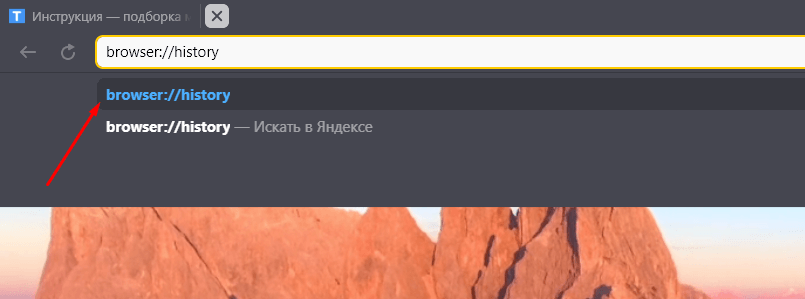 Перейти в раздел с историей Яндекс.Браузера можно не одним способом, и я рассказывала об это ранее. Есть простая комбинация клавиш Ctrl + H, а еще можно еще ввести в адресной строке запрос browser://history.