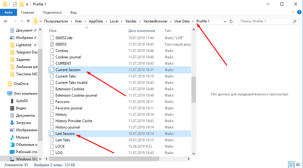 Дальше я нахожу в списке файлы под названием «Current Session» и «Last Session». Первый отвечает за текущую, актуальную сессию, а второй за предыдущий сеанс. Обычно после закрытия браузера данные из первого элемента перемещаются во второй.