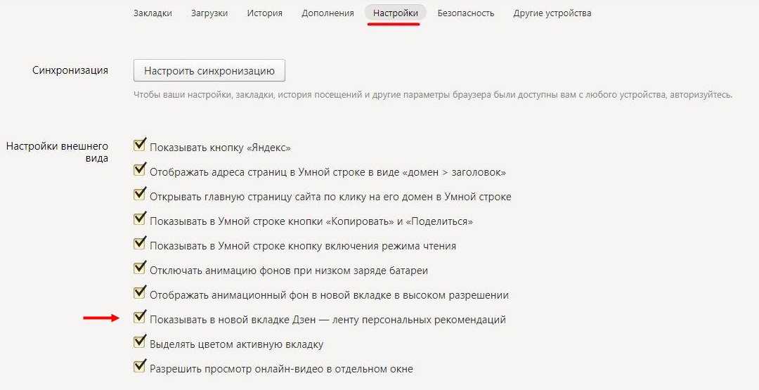 Если лента Дзен в Яндекс Браузере пропала и не восстанавливается даже после приведенных выше манипуляций – стоит заглянуть в настройки самого обозревателя.