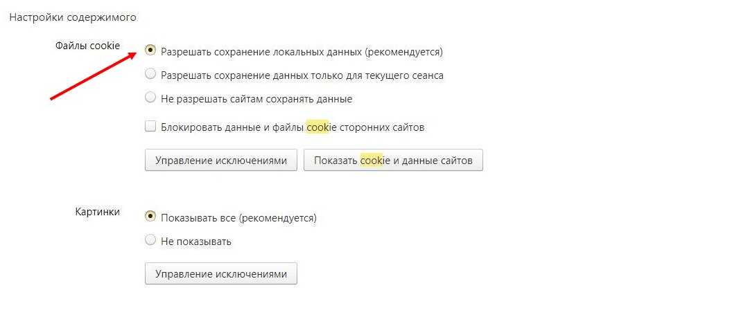 Для разных браузеров инструкция будет выглядеть немного иначе, но суть остается прежней — включить сохранение файлов куки.