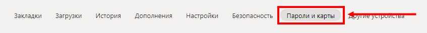 - На верхней панели ищите пункт «Пароли и карты» ;