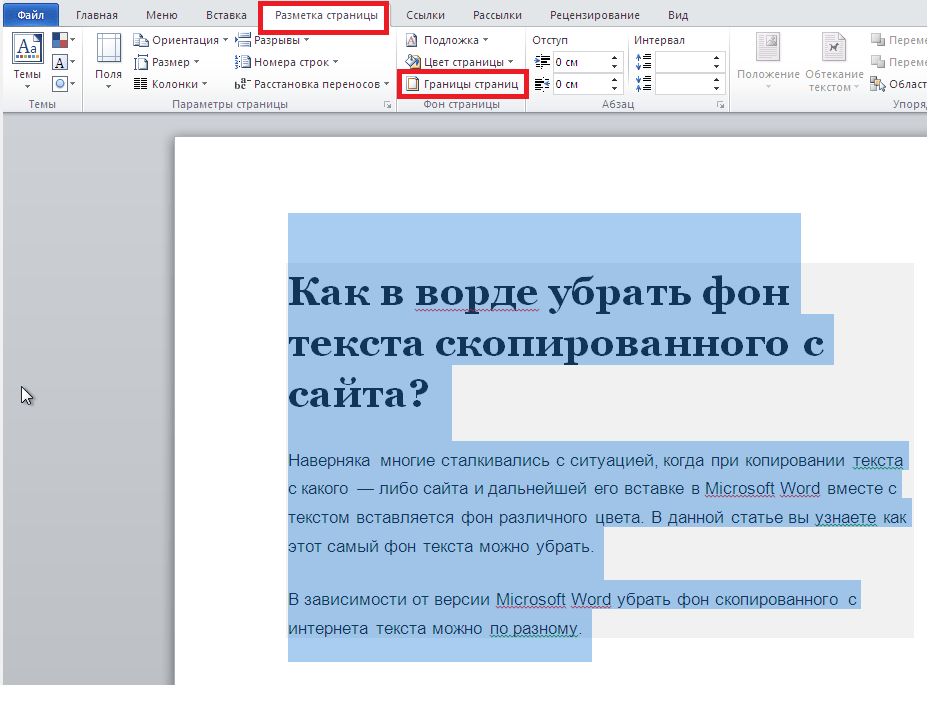 Не редко после копирования текста из интернета или другого файла он получает форматирование, которое неуместно в текущем документе. Чаще всего основной проблемой является цвет фона. После копирования с веб-сайтов фон может оказаться серым или вообще черным. Поэтому пользователи часто интересуются, как убрать цвет фона текста в документе Word.