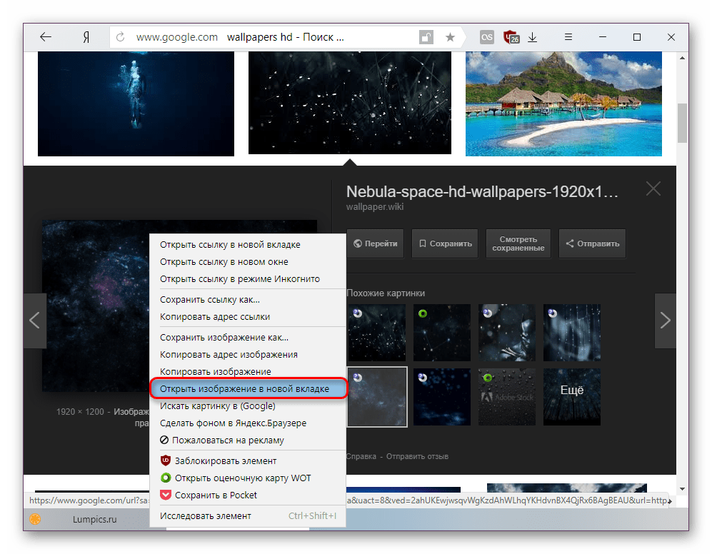 Стандартные советы для этого способа: выбирайте качественные, большие изображения, не ниже разрешения вашего экрана (например, 1920×1080 для мониторов ПК или 1366×768 для ноутбуков). Если на сайте не отображается размер картинки, его можно просмотреть, открыв файл в новой вкладке.
