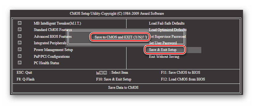 Осталось только зафиксироваться внесенные изменения, нажав на пункт «Save & Exit» или F10. Первый вариант является более предпочтительным, так как далеко не все интерфейсы поддерживают горячие клавиши.