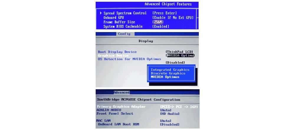 В меню найти настройки графической платы, которые расположены во вкладке «Advanced», «Advanced features», «Chipset features», «Graphic configuration» или «Peripherals».