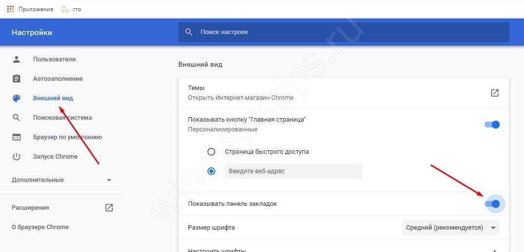 - Активируйте переключатель Показывать панель закладок. В этом случае они разу же появляются под строкой поиска.