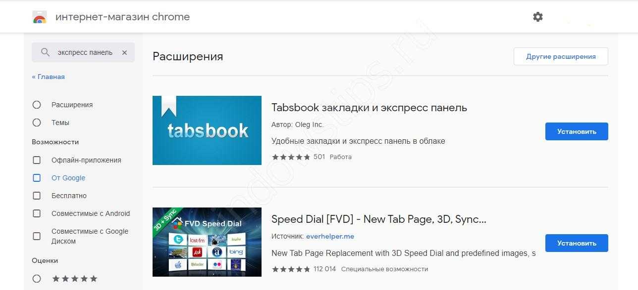 Но, как мы уже поняли, среди стандартного набора функций возможность создать визуальную закладку в Гугл Хром на экспресс панель почему-то не предусмотрена. Однако, существует ещё один путь, кстати, совершенно законный, для того, чтобы дать тебе возможность зафиксировать ссылки на самые важные для тебя сайты на панели быстрого запуска. Для этого можно загрузить одно из специальных расширений или плагинов для браузера, которые с лёгкостью решат эту проблему. Вот два самых популярных варианта, практически одинаковых по функциональности: