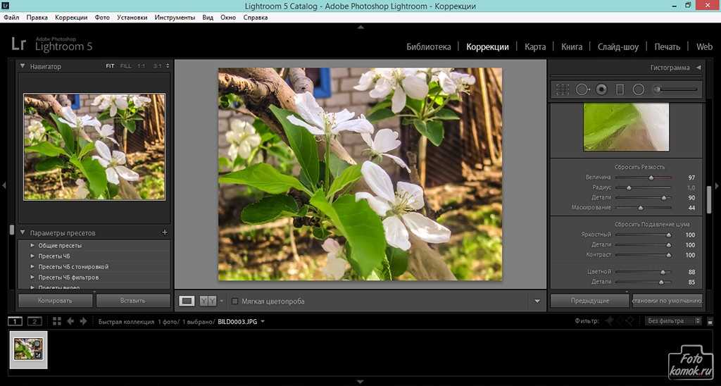 Именно на примере изображения формата JPEG можно рассмотреть возможности Lightroom, которая буквально превращает некачественное фото в почти профессиональное.