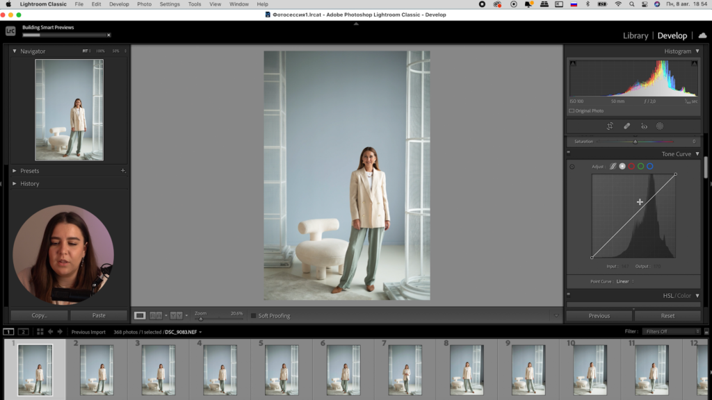 Работать нам предстоит в разделе Develop. С правой стороны находятся инструменты, с помощью которых будем обрабатывать фото.