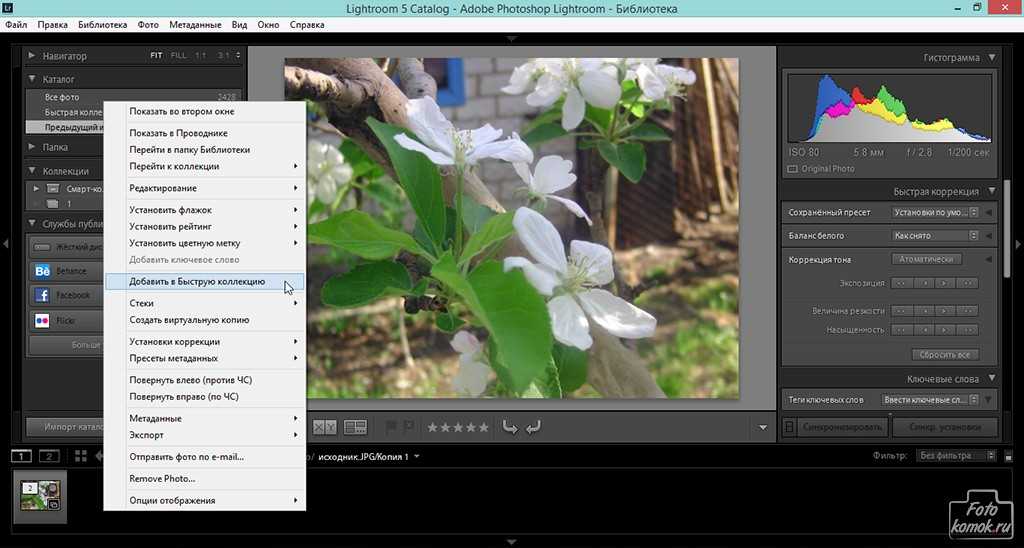 После переносим его в «Быструю коллекцию», нажав на скопированное фото левой кнопкой мыши и во вкладке «Фото» выбрав «Добавить фото в быструю коллекцию». Это упростит задачу по поиску откорректированного изображения.