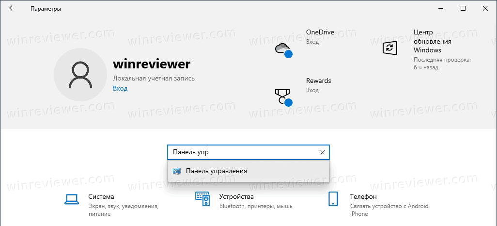 Было бы удобно, если бы в Параметрах была ссылка, позволяющая открыть классическую Панель управления. Однако, простой способ открыть классическую Панель управления оттуда всё же есть. Вы можете использовать строку поиска в Параметрах Windows, чтобы открыть Панель управления.