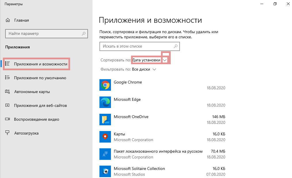 В Параметрах установленные программы и приложения представлены гораздо подробнее. Удобство заключается в том, что напротив каждого приложения или программы показаны его размер и дата установки. Можете сами в этом убедиться.
