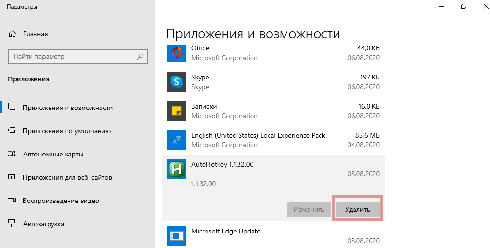 Если кликнуть по приложению, то появятся кнопки «Изменить» и «Удалить». В зависимости от того, какая кнопка активна, можно выбрать то или иное действие.