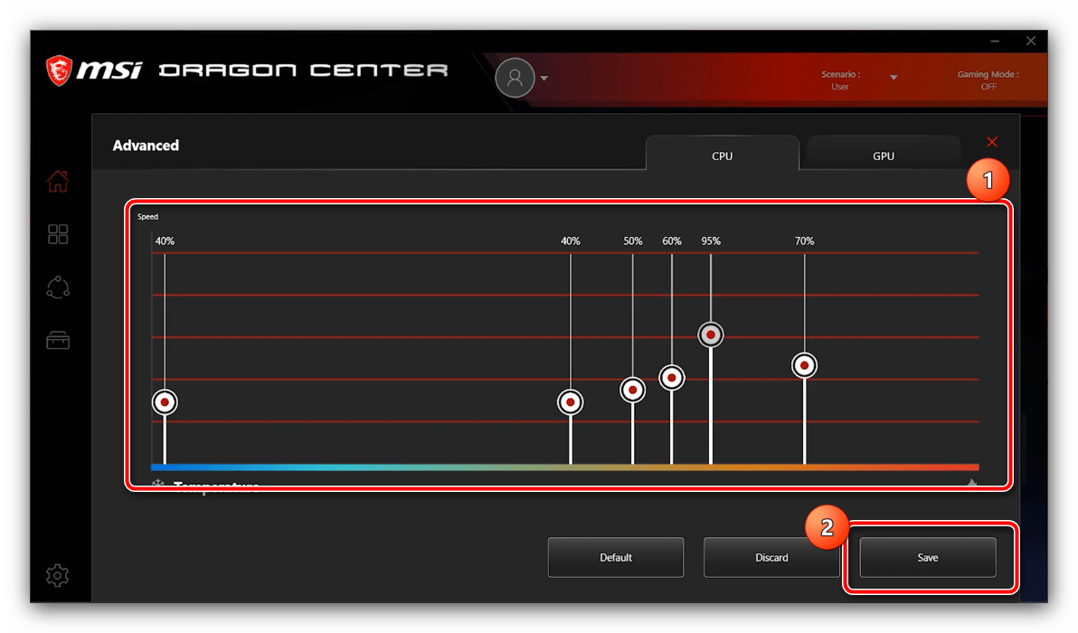 - Show – увеличивает до максимума рабочую скорость вентиляторов на пол минусы, чтобы сразу же охладить их;