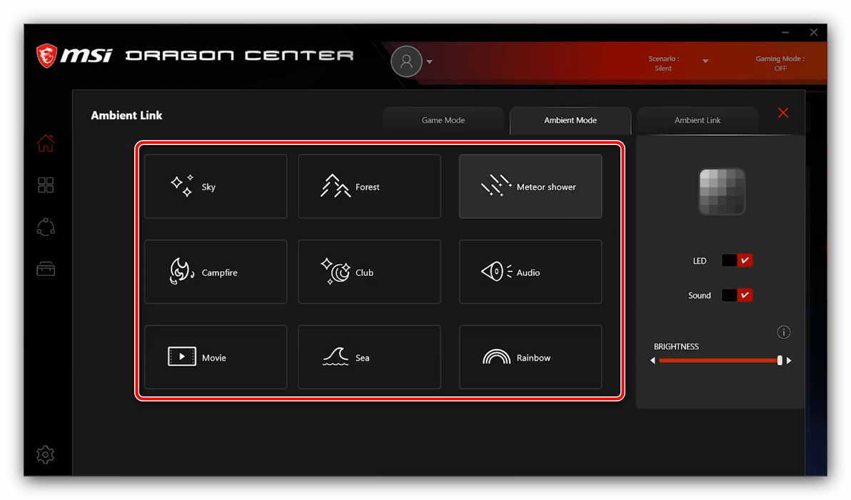Рассматриваемое приложение также позволяет управлять подсветкой разнообразных периферийных устройств – за это отвечает вкладка «Ambient Link» (на некоторых конфигурациях называется «Mystic Lights»).