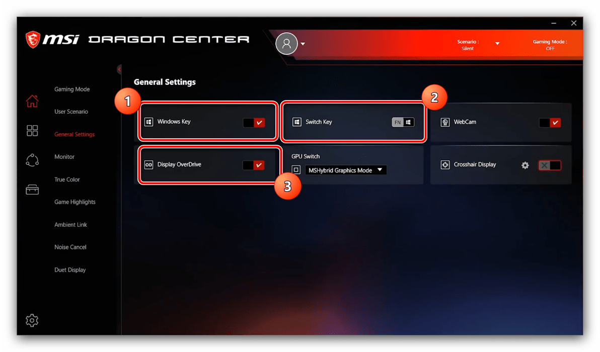 С помощью МСИ Драгон Центр на ноутбуках и игровых материнских платах тайваньского производителя можно настроить также поведение клавиатуры и подключённого монитора или матрицы.