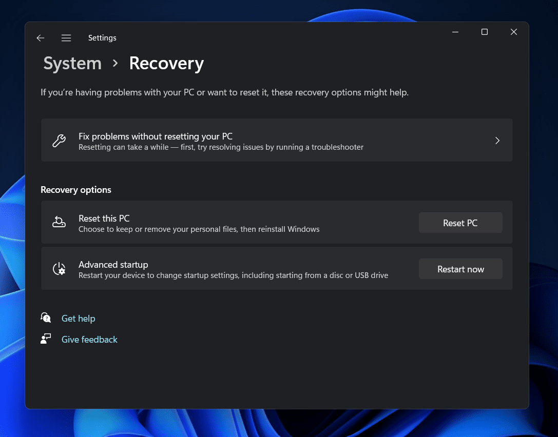 If none of those mentioned above steps solved your problem reset your Windows 11 device. Sometimes there is a problem with Windows core files that you cannot verify manually. Follow these steps to reset your device: