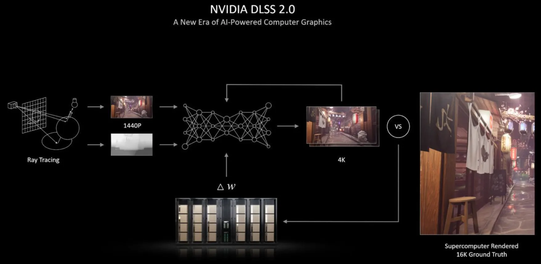 NVIDIA DLSS использует изображение с более низким разрешением, а затем масштабирует его до исходного разрешения, что похоже на обычный метод масштабирования. Однако, она делает гораздо больше. Самая большая разница заключается в том, что метод DLSS использует нейронную сеть, извлекая часть преимуществ глубокого обучения.