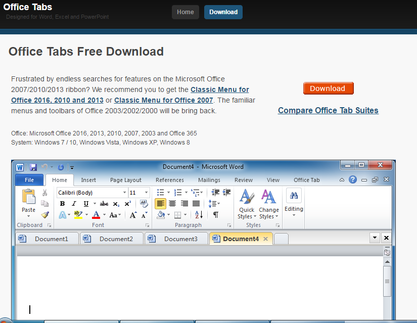 Рис.1. Дистрибутив Office Tab на официальном сайте.