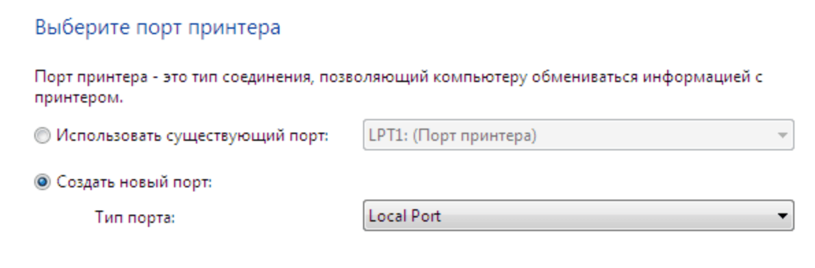 Подключение принтера через локальный порт