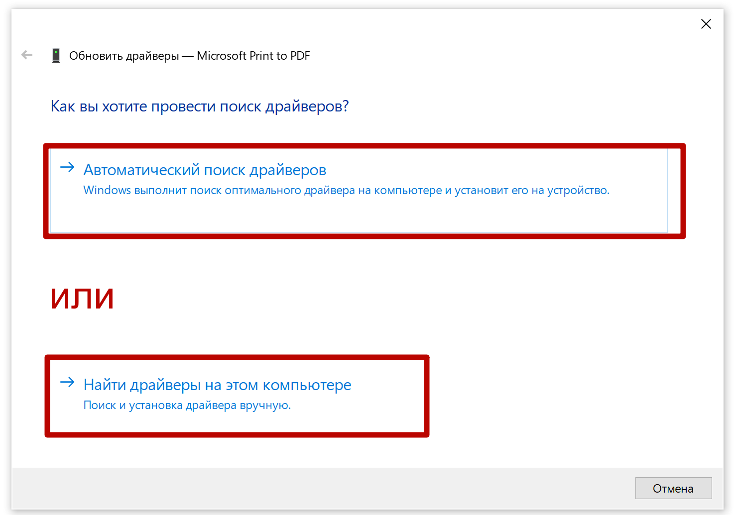 Воспользуйтесь удобным и возможным в конкретно вашем случае способом обновления – автоматическим поиском драйверов или ручным, если знаете, где находится файл установки.
