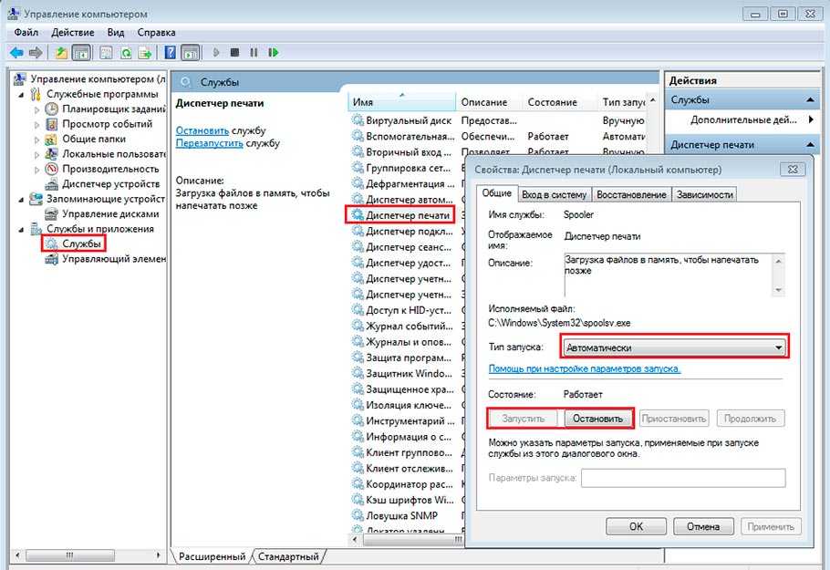 Устранение ошибки «Windows 7 не удается подключиться к принтеру» с помощью активации службы Диспетчер печати