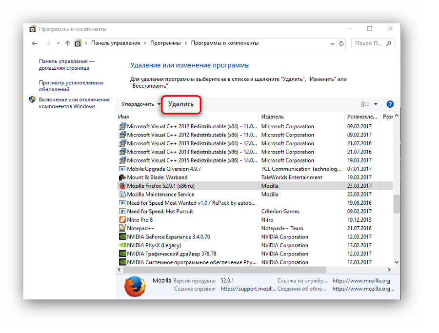 Первое логичное действие в такой ситуации – удалить Мазилу с последующей переустановкой. Рассмотрим процедуру во всех подробностях: