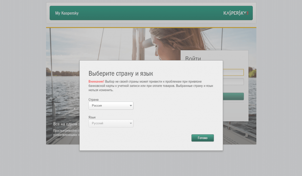 Выберите страну и язык (будьте внимательны на этом шаге, так как в дальнейшем изменить язык уже не получится) и нажмите Готово: