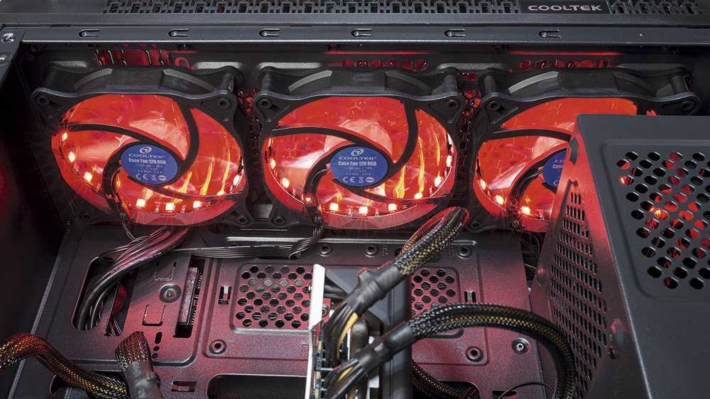 Три эффектно светящихся передних вентилятора Cooltek TG-01 обеспечивают хороший поток свежего воздуха, который необходим для того, чтобы проверить разгонный потенциал процессоров Ryzen.