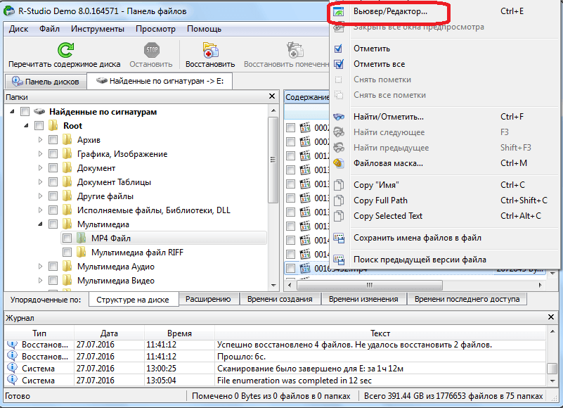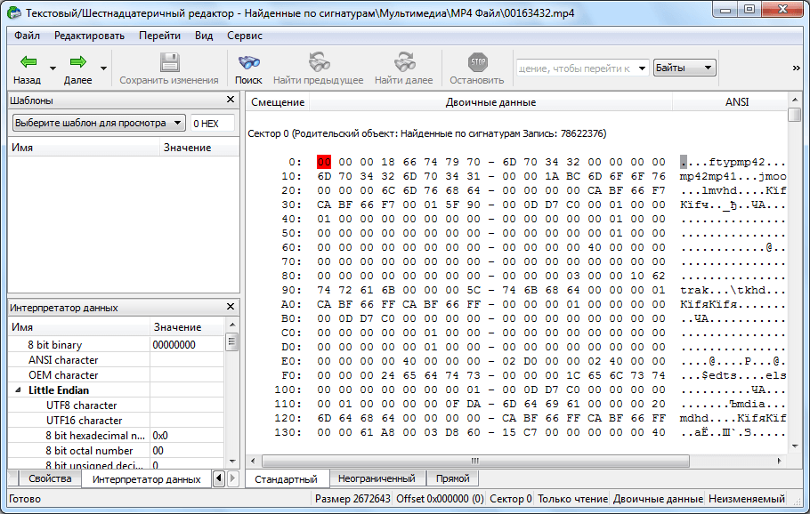 Предварительный просмотр сохраненных файлов перед восстановлением. Создание шаблонов и редактирование файлов в HEX-редакторе.